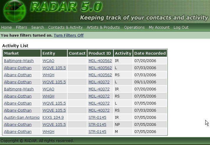 - Monitor your project activity such as radio airplay, sales, interviews, publications by market to respond to trends more effectively and capitalize on the demand created.